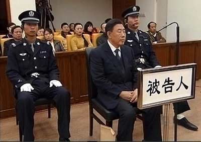 2005年12月27日,北京市第二中级人民法院依法对国土资源部原部长田凤山受贿一案作出一审判决,以受贿罪判处被告人田凤山无期徒刑,剥夺政治权利终身,并处没收个人全部财产。 田凤山受审(电视截图)图片来源:国新图库