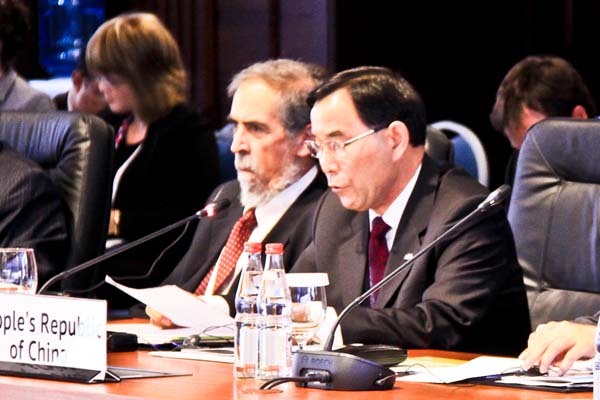 他指出,作为发展国家,中国政府始终高度重视国家粮食安全,始终把发展农业和粮食生产、满足城乡居民对食物量和质的需要作为头等大事来抓,并取得了巨大成就。二十世纪八十年代以来,中国采取了一系列有利于粮食发展的政策和措施,坚持立足国内生产满足需求的方针,实行粮食省长负责制,加大对农业和粮食领域的投入,大力加强农业科技创新和推广应用,加强耕地和水资源等基本生产要素的保护,加强粮食流通体制改革,推进粮食价格保护政策等,并逐渐建立了符合市场经济规律的粮食安全政策体系。中国以不到9%的耕地,养活了世界近21%的人口。自2004年以来,中国粮食连续八年丰收,目前粮食库存充裕,粮食供需问题基本平衡,国内粮食价格基本稳定。中国城乡居民收入持续增长,生活水平不断提高。粮食均衡供给能力增强,城乡居民食物消费品种日益丰富,营养状况日益改善。