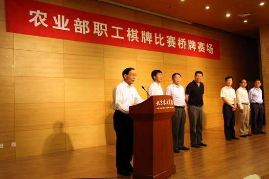 朱保成指出,开展丰富多彩的棋牌活动,有利于活跃机关文化,有利于培养团队意识,有利于同志们的身心健康。通过棋牌比赛的举办,将对丰富机关文化生活、营造健康向上的文化氛围起到积极的促进作用。他强调,在落实中央提出的“三农”工作重大部署过程中,农业部门担负着光荣而艰巨的任务。愉悦的心态和充沛的体能是完成历史使命的基础条件,希望部工会、各司局和各单位认真总结此次棋牌比赛的经验,进一步丰富内容,创新方式,完善制度,把机关文化建设不断引向深入。希望广大干部职工以这次比赛为契机,弘扬创先争优精神,大力推进机关文化建设,坚持健康的生活方式,以更加强健的体质、更加饱满的精神、更加昂扬的斗志,为实现“两个千方百计”、“两个努力确保”、“两个持续提高”的目标作出新贡献。